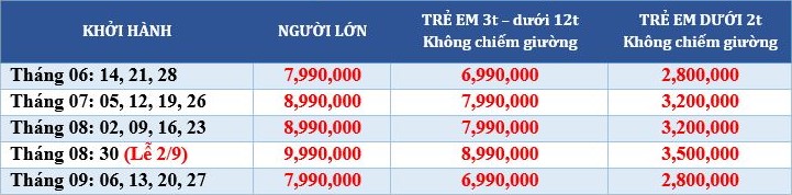 *Chú thích khách sạn: Chi phí phụ thu phòng đơn du khách phải tự chi trả, công ty mặc định sắp xếp 2 giường đơn (Twins) hoặc khách có thể đăng ký giường lớn (Double) tùy theo tình hình book phòng lúc đó của khách sạn. Khách xác nhận loại phòng mong muốn ngay khi lên phiếu đăng ký tour. Giá phòng trong bảng báo giá áp dụng theo tiêu chuẩn phòng 2 người.