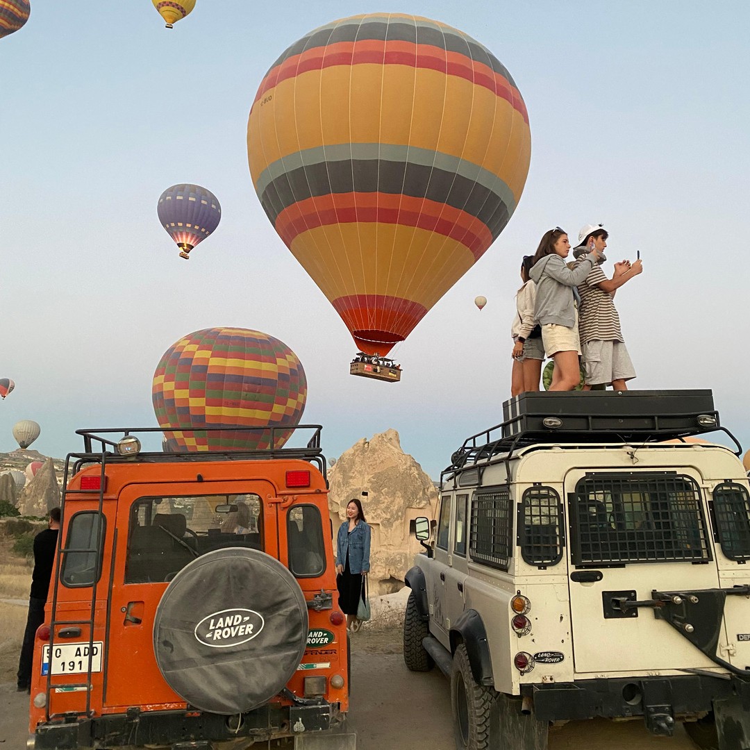 2. Jeep Safari săn bình minh: Hoặc nếu Quý khách yêu thích cảm giác mạnh và khám phá địa hình, Quý khách có thể lựa chọn tour Jeep Safari băng qua các thung lũng Red Valley, Rose Valley, Love Valley... để đón bình minh cùng hàng trăm quả khinh khí cầu bay lên trời, hoặc săn hoàng hôn rực rỡ giữa thiên nhiên hùng vĩ. Chuyến đi dùng chân tại điểm ngắm cảnh tuyệt đẹp, nơi Quý khách có thể thưởng thức rượu vag địa phương và lưu lại những hình ảnh không thể nào quên.